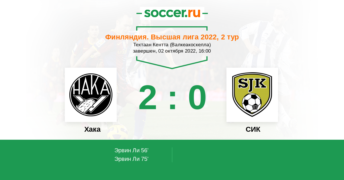 Протокол матча Хака против СИК