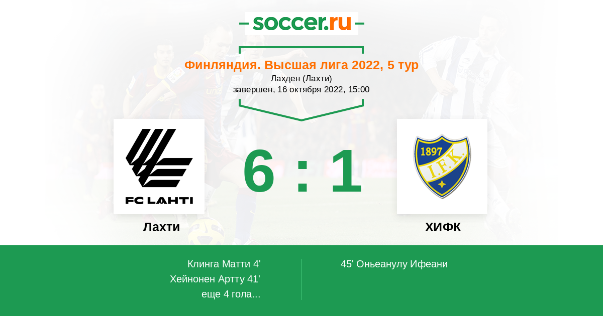 Протокол матча Лахти против ХИФК