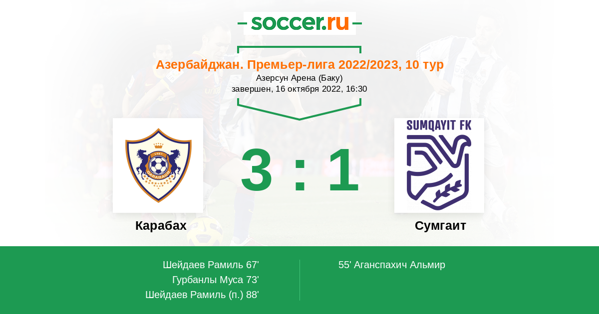 Протокол матча Карабах против Сумгаит