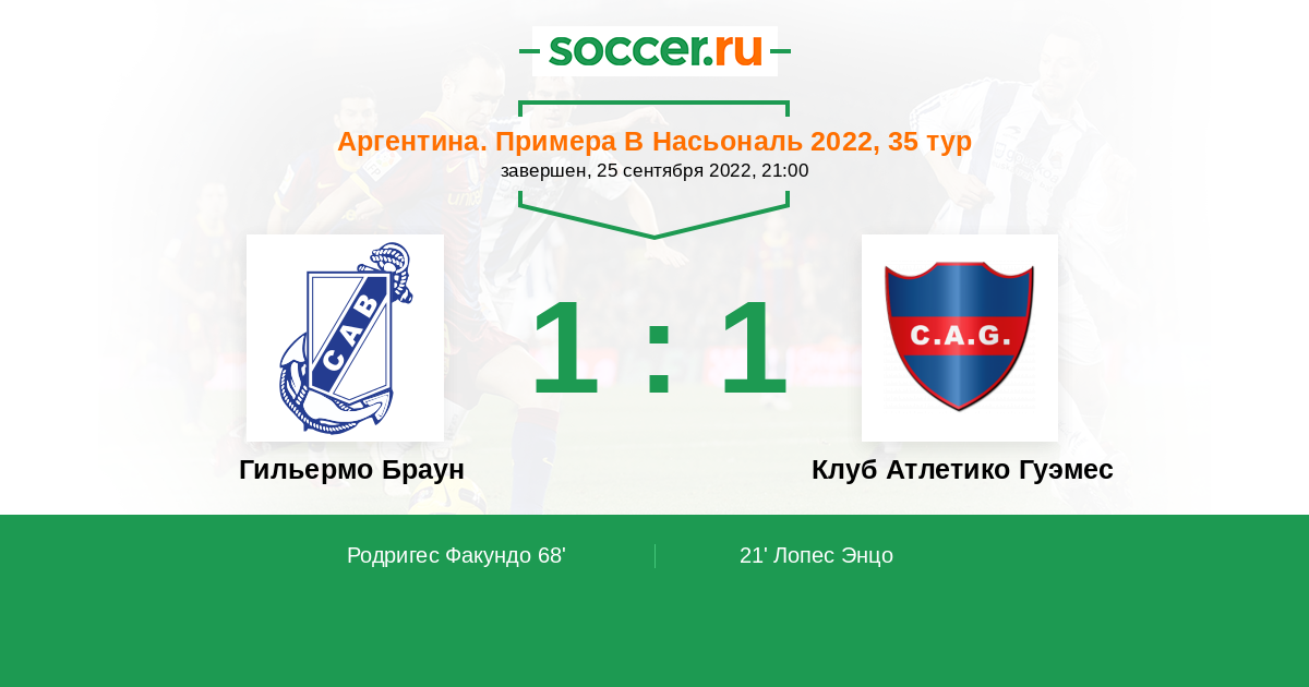 Протокол матча Гильермо Браун против Атлетико Гуэмес