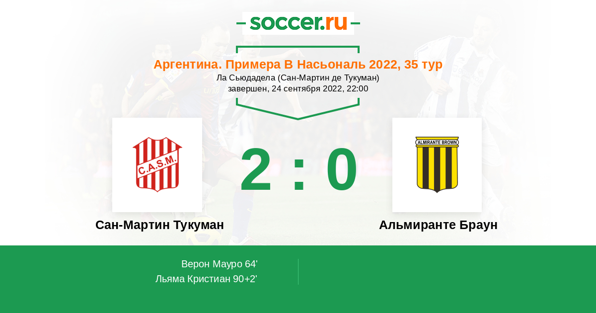Протокол матча Сан-Мартин Тукуман против Альмиранте Браун