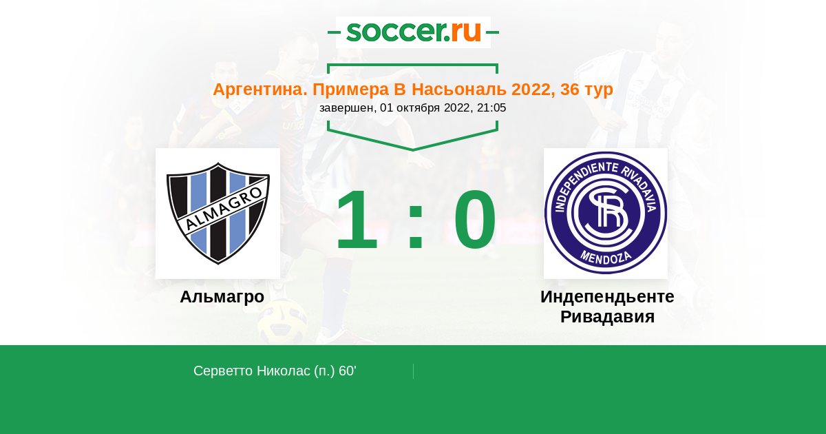 Протокол матча Альмагро против Индепендьенте Ривадавия