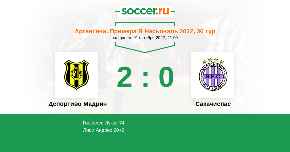 Протокол матча Депортиво Мадрин против Сакачиспас