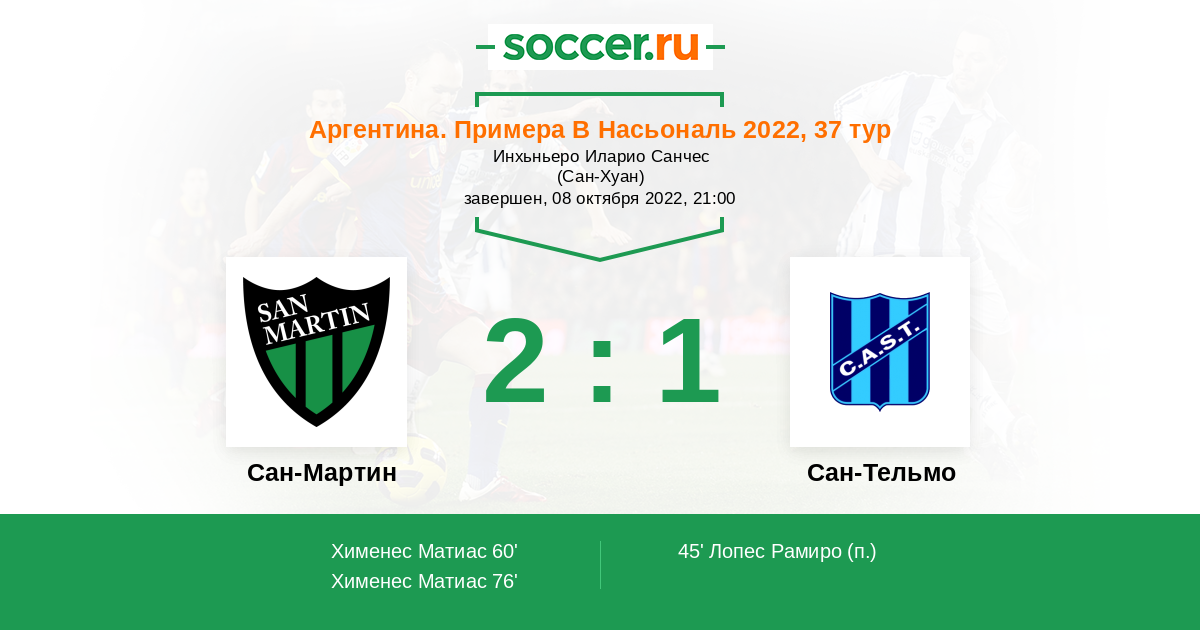 Протокол матча Сан-Мартин против Сан-Тельмо