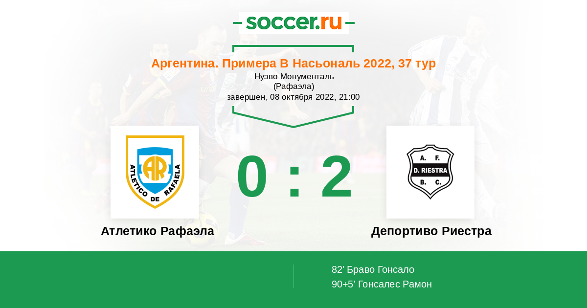 Протокол матча Атлетико Рафаэла против Депортиво Риестра