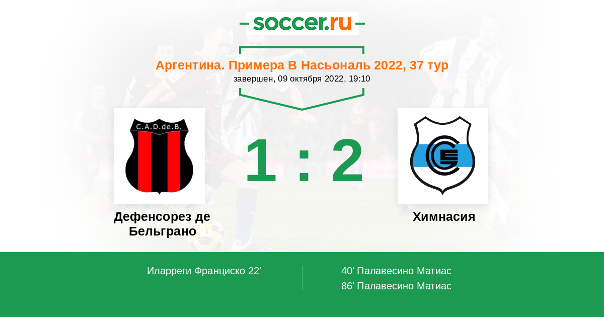 Протокол матча Дефенсорез де Бельграно против Химнасия