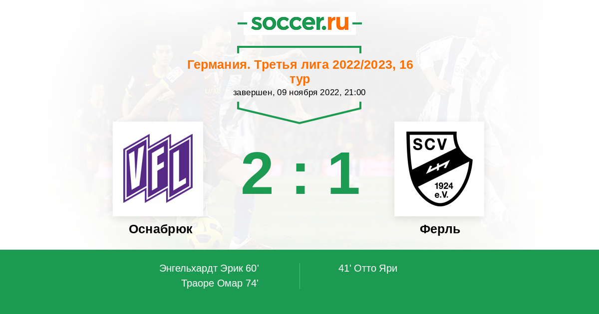 Протокол матча Оснабрюк против Ферль