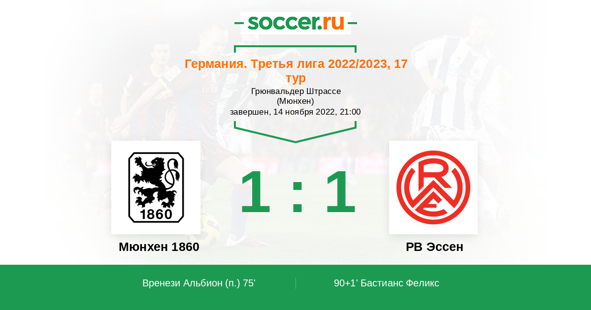 Протокол матча Мюнхен 1860 против РВ Эссен