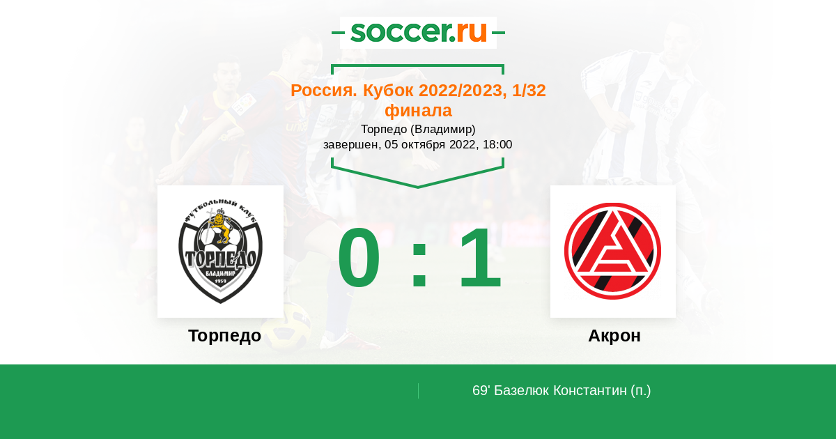 Протокол матча Торпедо против Акрон