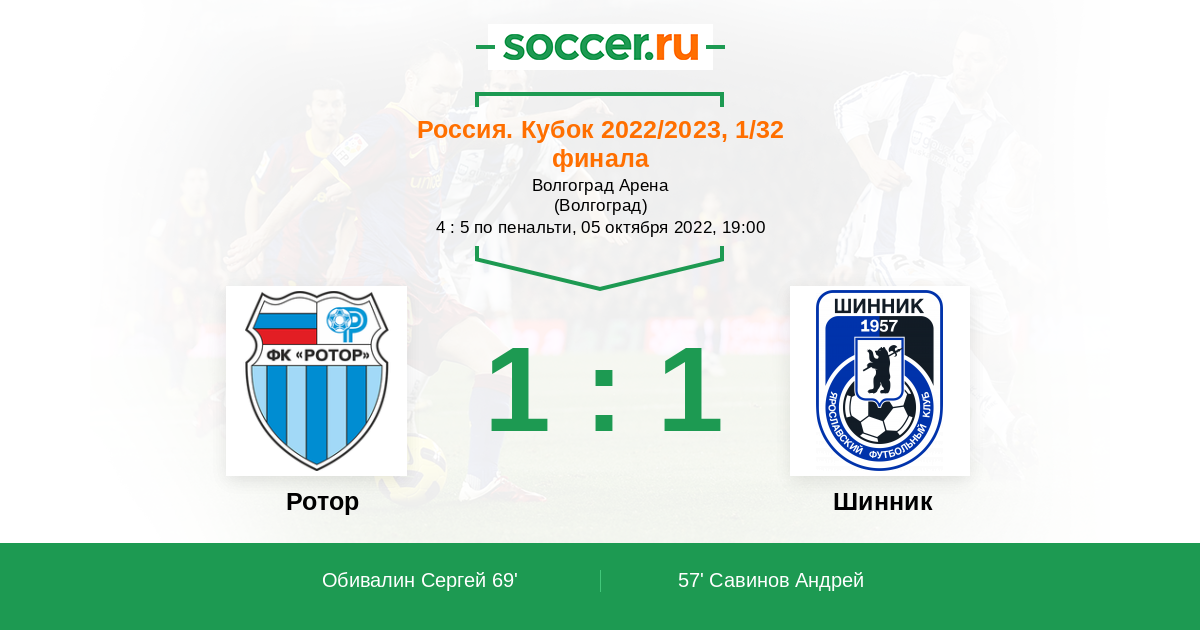 Протокол матча Ротор против Шинник