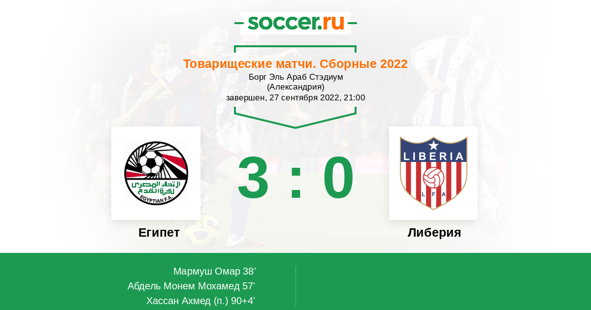 38' (1:0) Мармуш Омар (22) (Хамада Махмуд (26))