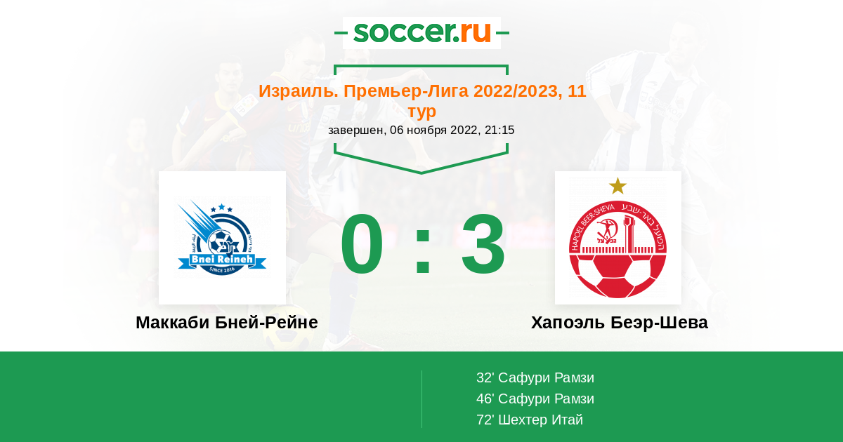 Протокол матча Маккаби Бней-Рейне против Хапоэль Беэр-Шева