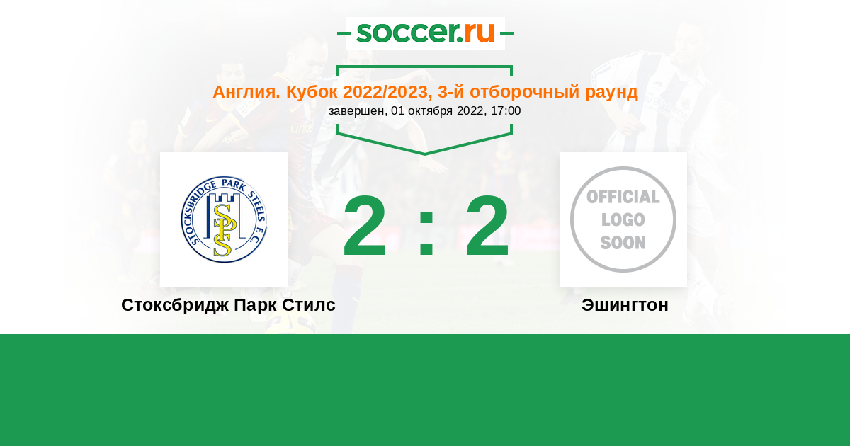 История матча Стоксбридж Парк Стилс против Эшингтон