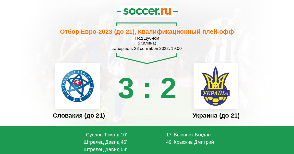 Протокол матча Словакия (до 21) против Украина (до 21)