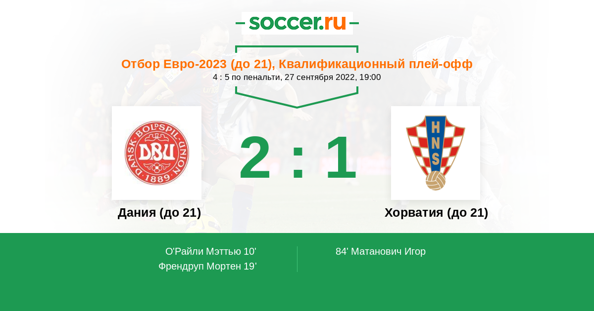 Протокол матча Дания (до 21) против Хорватия (до 21)