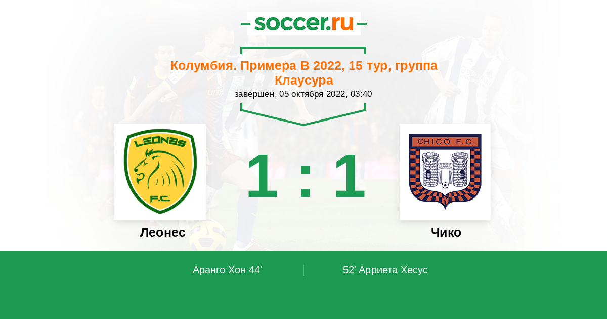 Протокол матча Леонес против Чико