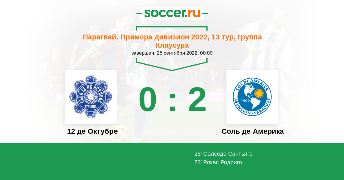 25' (0:1) Салседо Сантьяго (7) (Барриос Виктор (21))