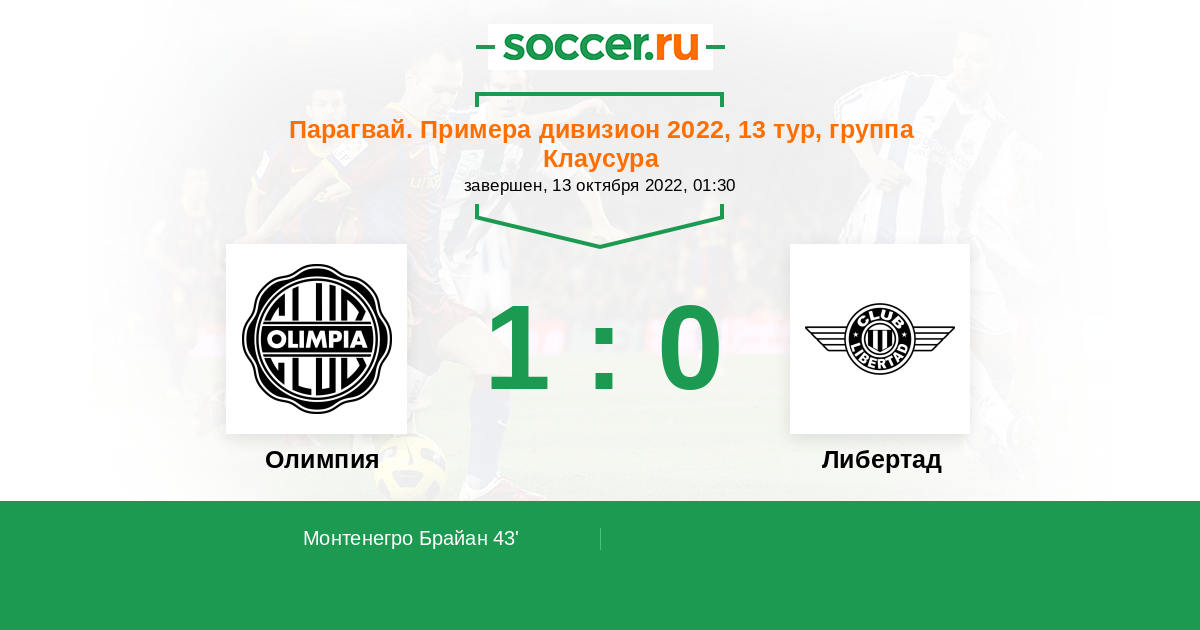 Протокол матча Олимпия против Либертад