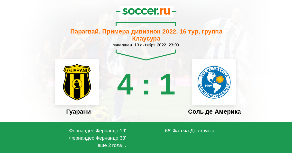 Протокол матча Гуарани против Соль де Америка