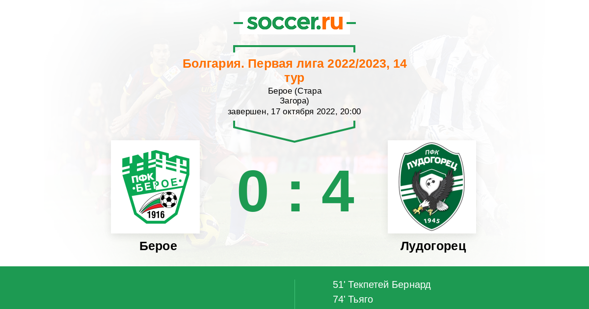 Протокол матча Берое против Лудогорец