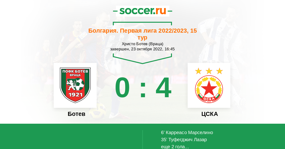 Протокол матча Ботев против ЦСКА