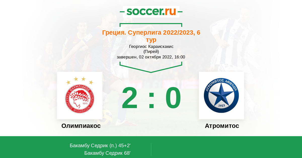 Протокол матча Олимпиакос против Атромитос