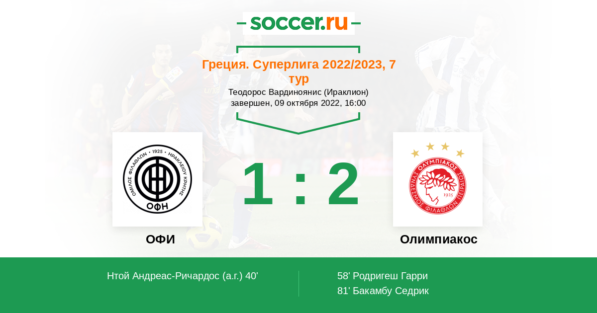 Протокол матча ОФИ против Олимпиакос
