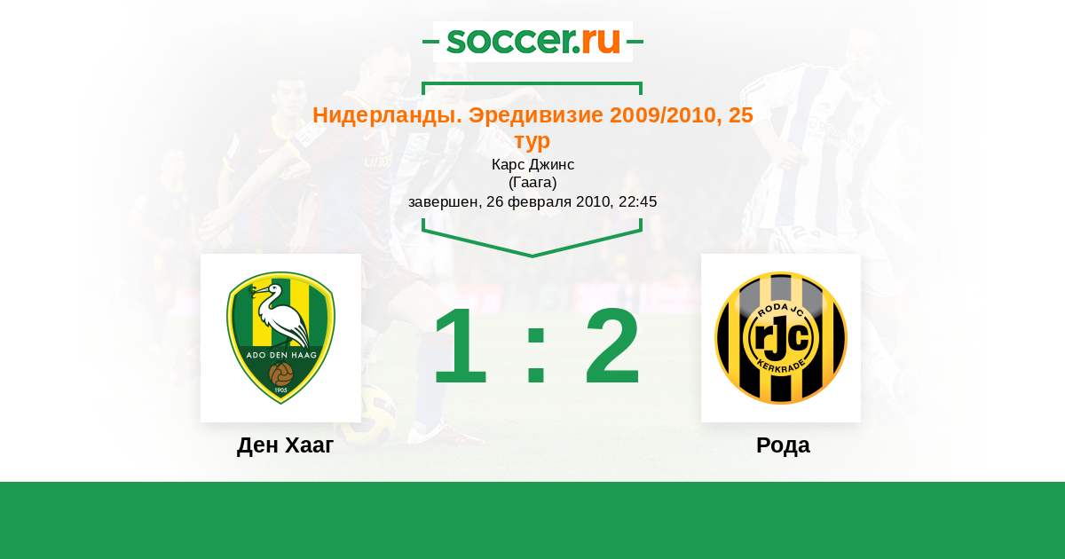Нидерланды. Эредивизи 04.12.2009 Рода Логотип футбольный клуб Рода (Керкраде) 1:1 Логотип футбольный клуб Ден Хааг (Гаага) Ден Хааг