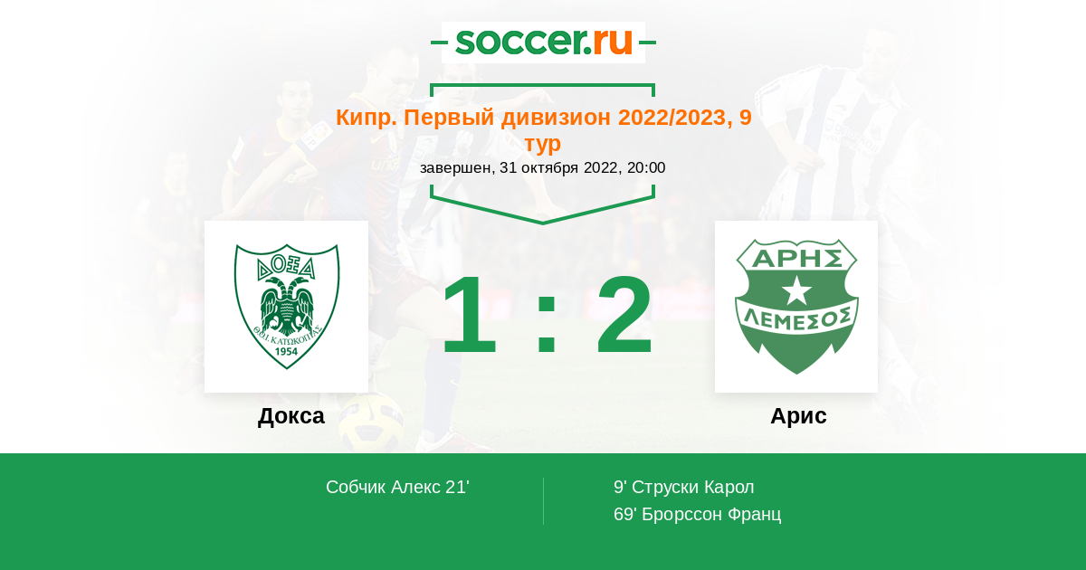 Протокол матча Докса против Арис