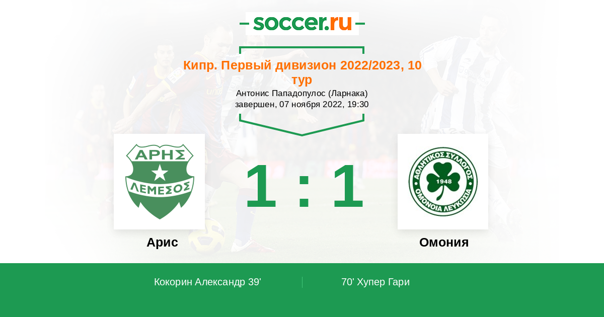 Протокол матча Арис против Омония