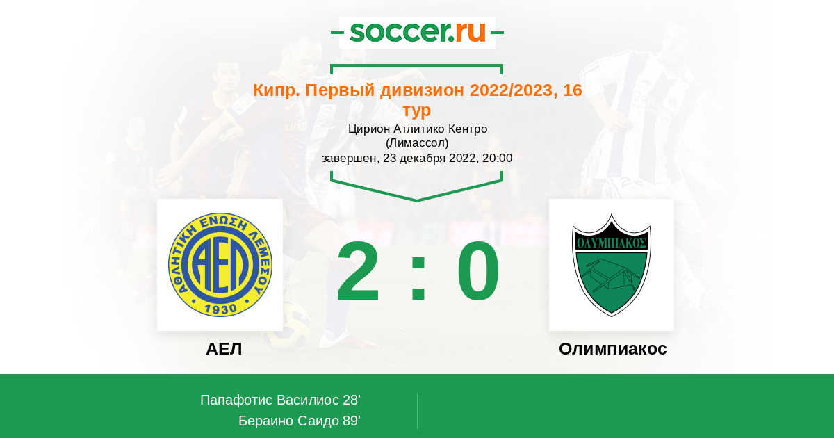 Протокол матча АЕЛ против Олимпиакос