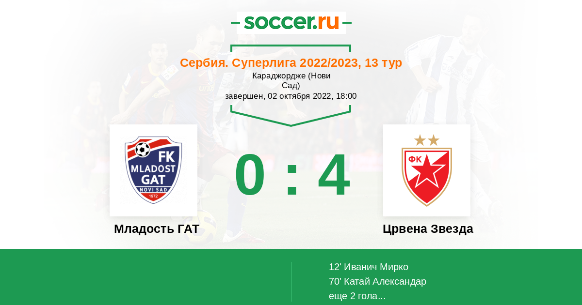 Протокол матча Младость ГАТ против Црвена Звезда
