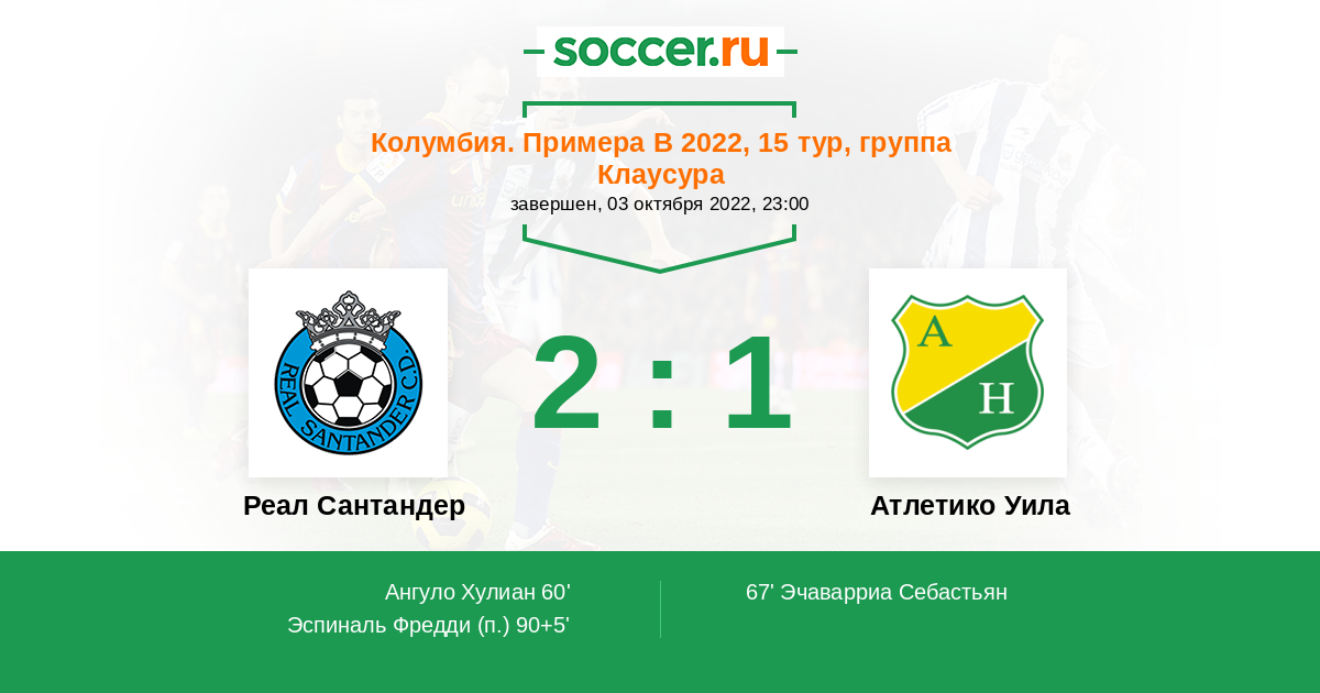 Протокол матча Реал Сантандер против Атлетико Уила