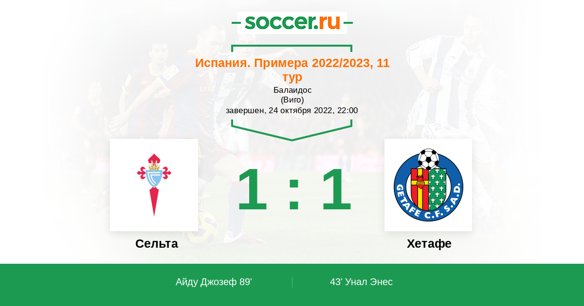 Протокол матча Сельта против Хетафе