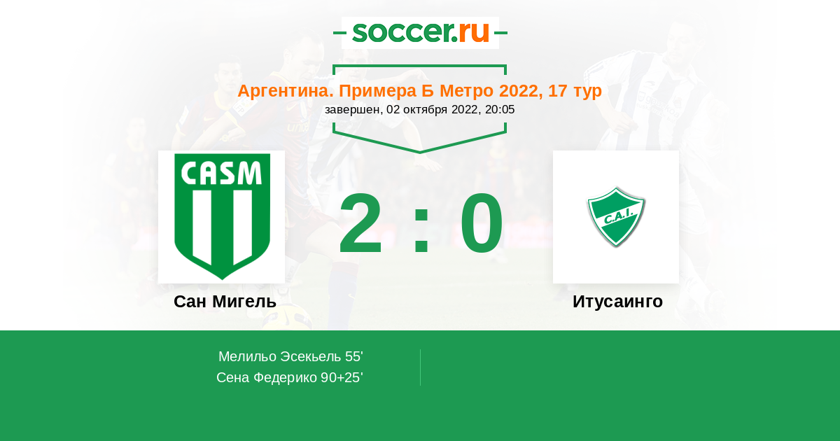 Протокол матча Сан Мигель против Итусаинго