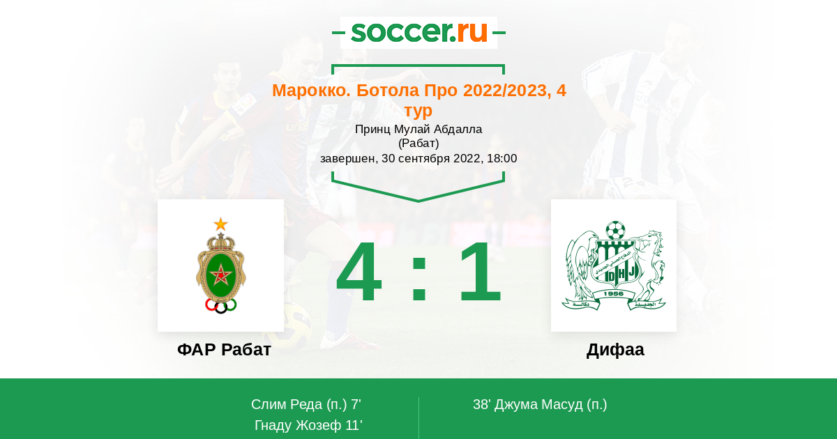 Протокол матча ФАР Рабат против Дифаа