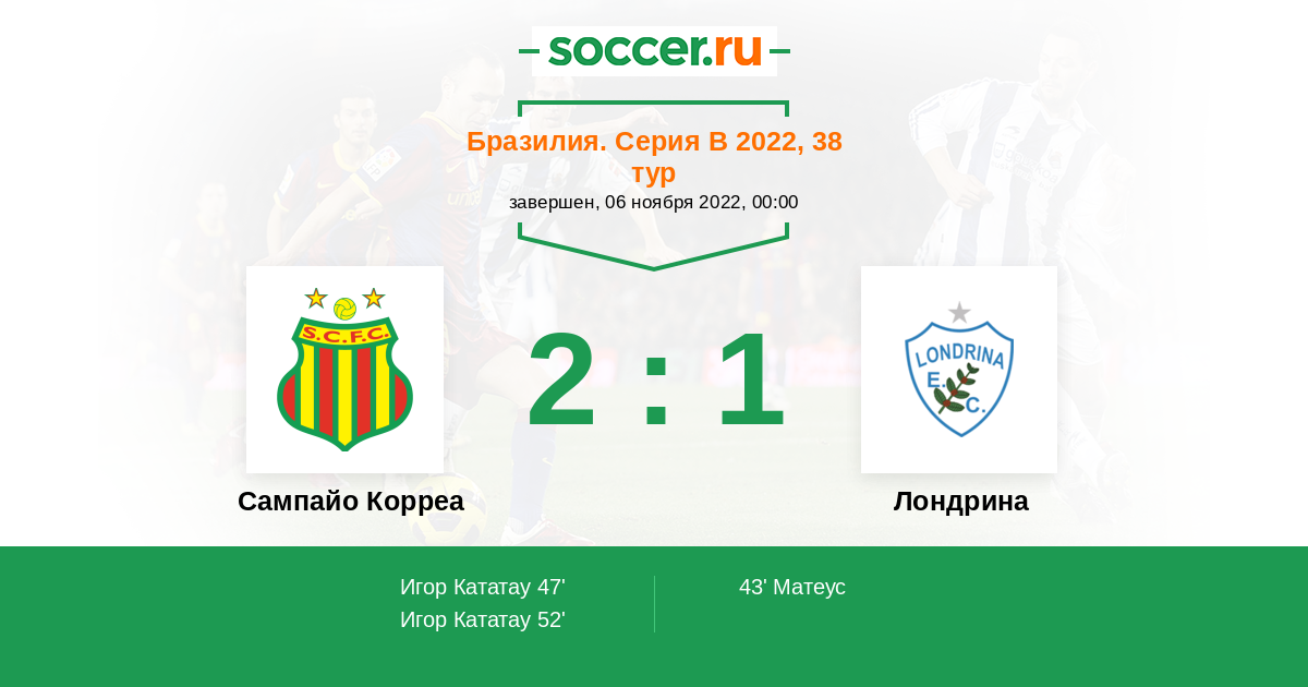 Протокол матча Сампайо Корреа против Лондрина