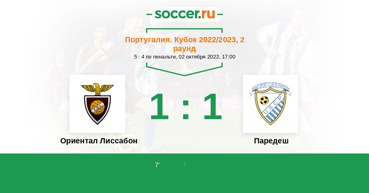 Протокол матча Ориентал Лиссабон против Паредеш