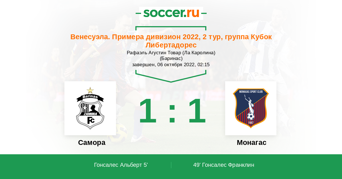 Протокол матча Замора против Монагас