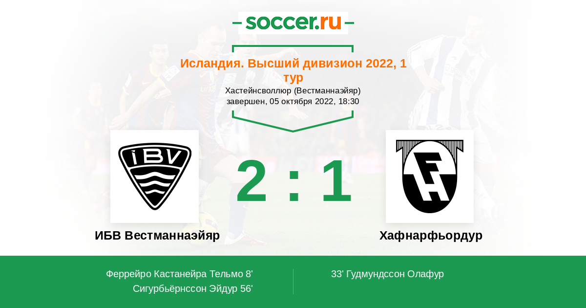 Протокол матча ИБВ Вестманнаэйяр против Хафнарфьордур