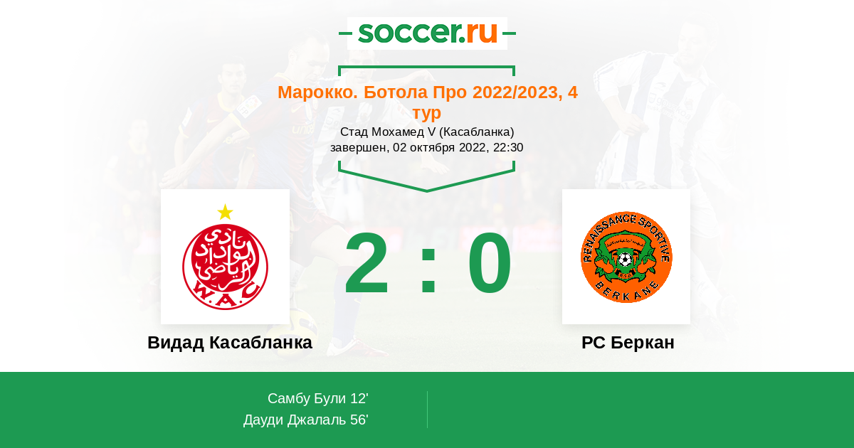 Протокол матча Видад Касабланка против РС Беркан