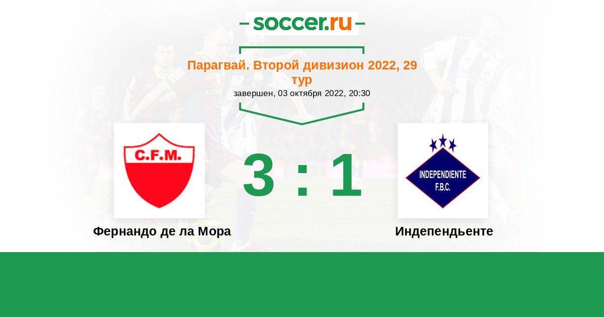 Парагвай. Второй дивизион 16.10.2021 Индепендьенте Логотип футбольный клуб Индепендьенте (Луке) 2:1 Логотип футбольный клуб Фернандо де ла Мора Фернандо де ла Мора