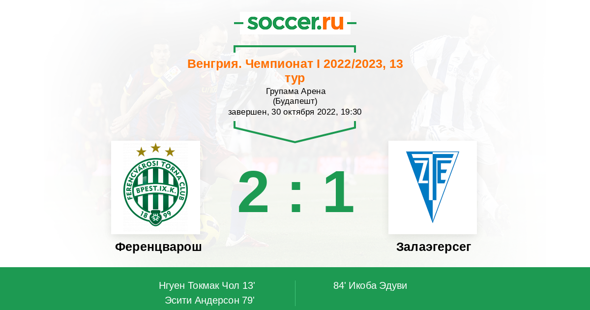 Протокол матча Ференцварош против Залаэгерсег