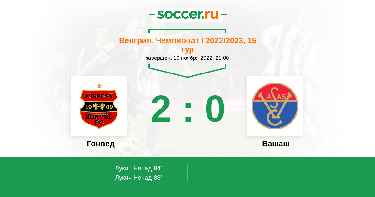 Протокол матча Гонвед против Вашаш
