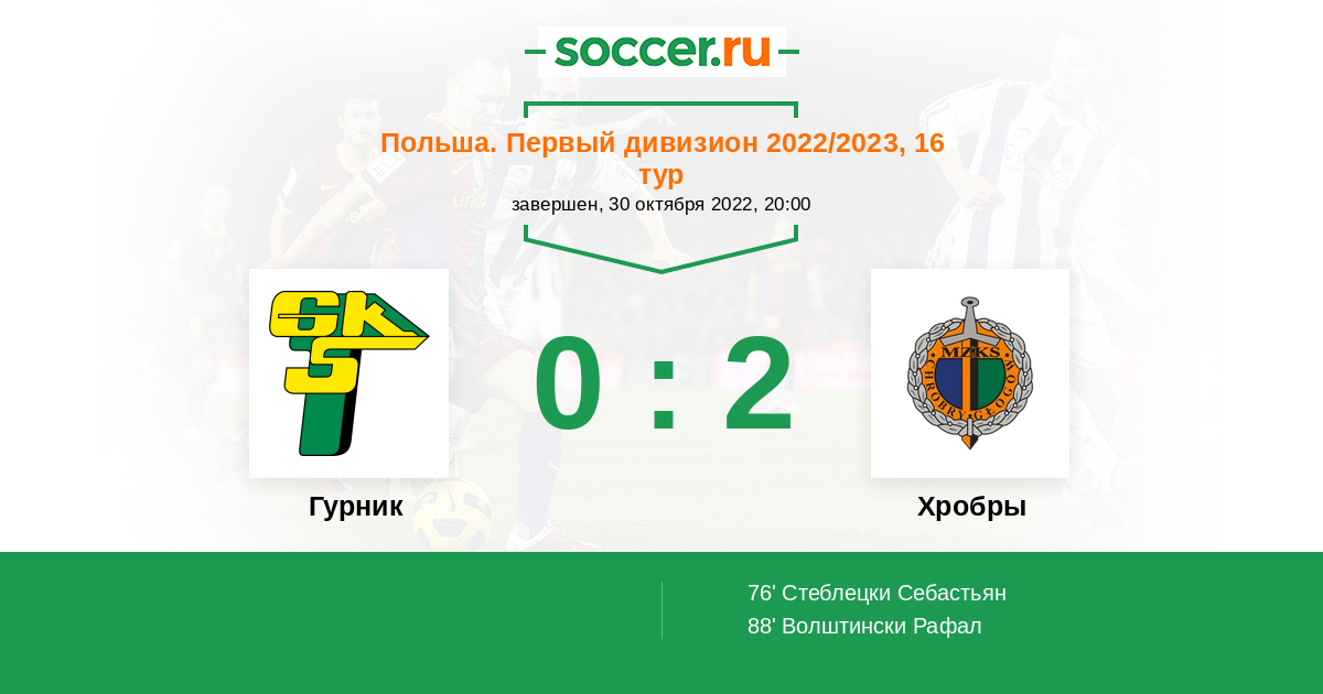 Протокол матча Гурник против Хробры