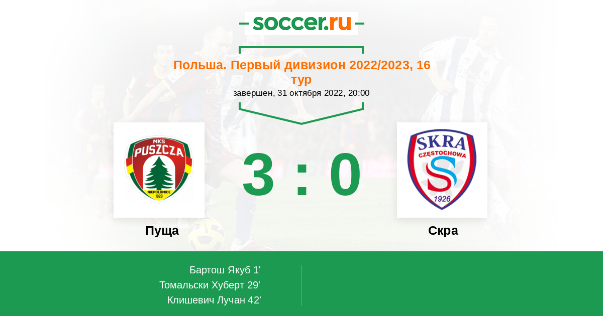 Протокол матча Пуща против Скра