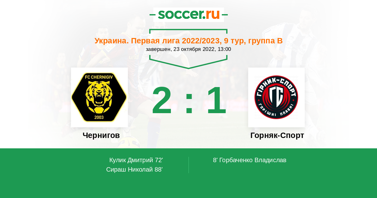 Протокол матча Чернигов против Горняк-Спорт