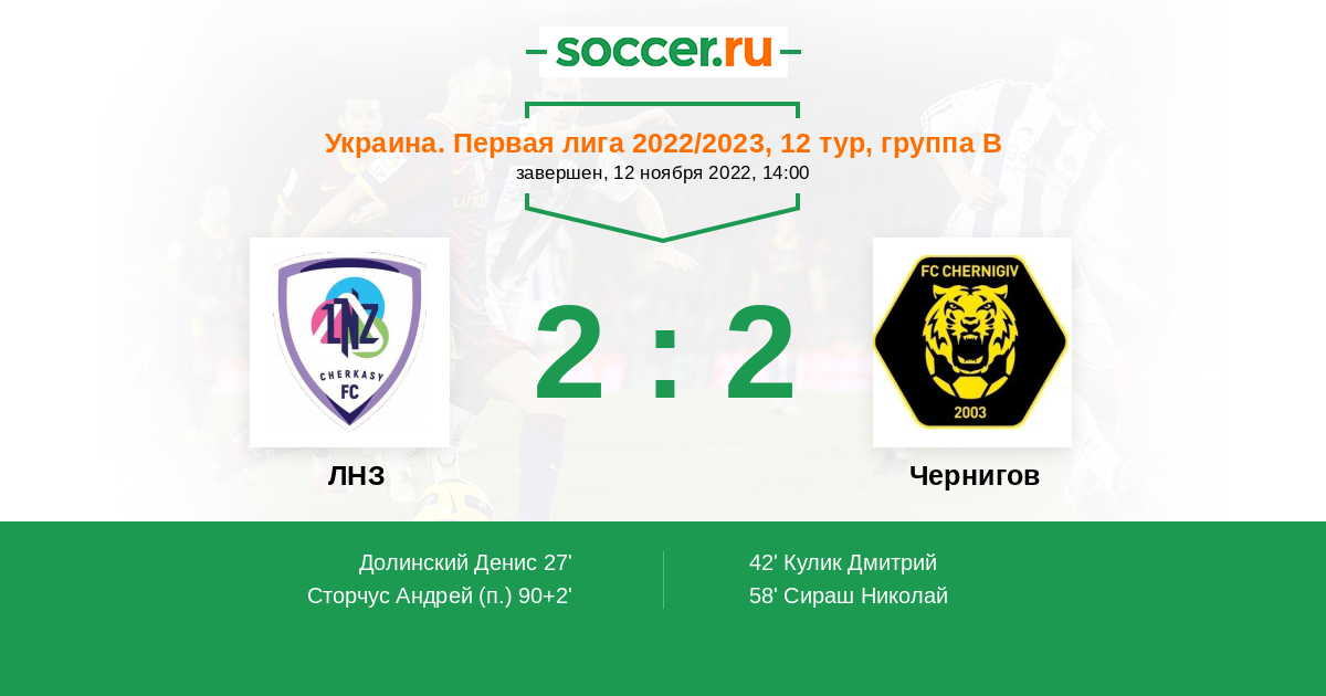 Протокол матча ЛНЗ против Чернигов