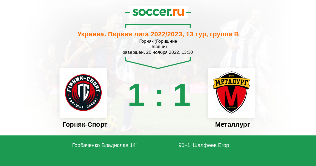 Протокол матча Горняк-Спорт против Металлург