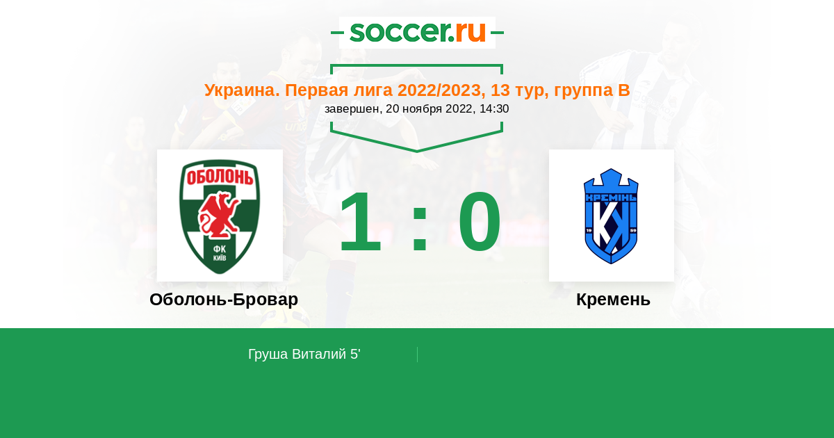 Протокол матча Оболонь-Бровар против Кремень